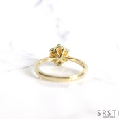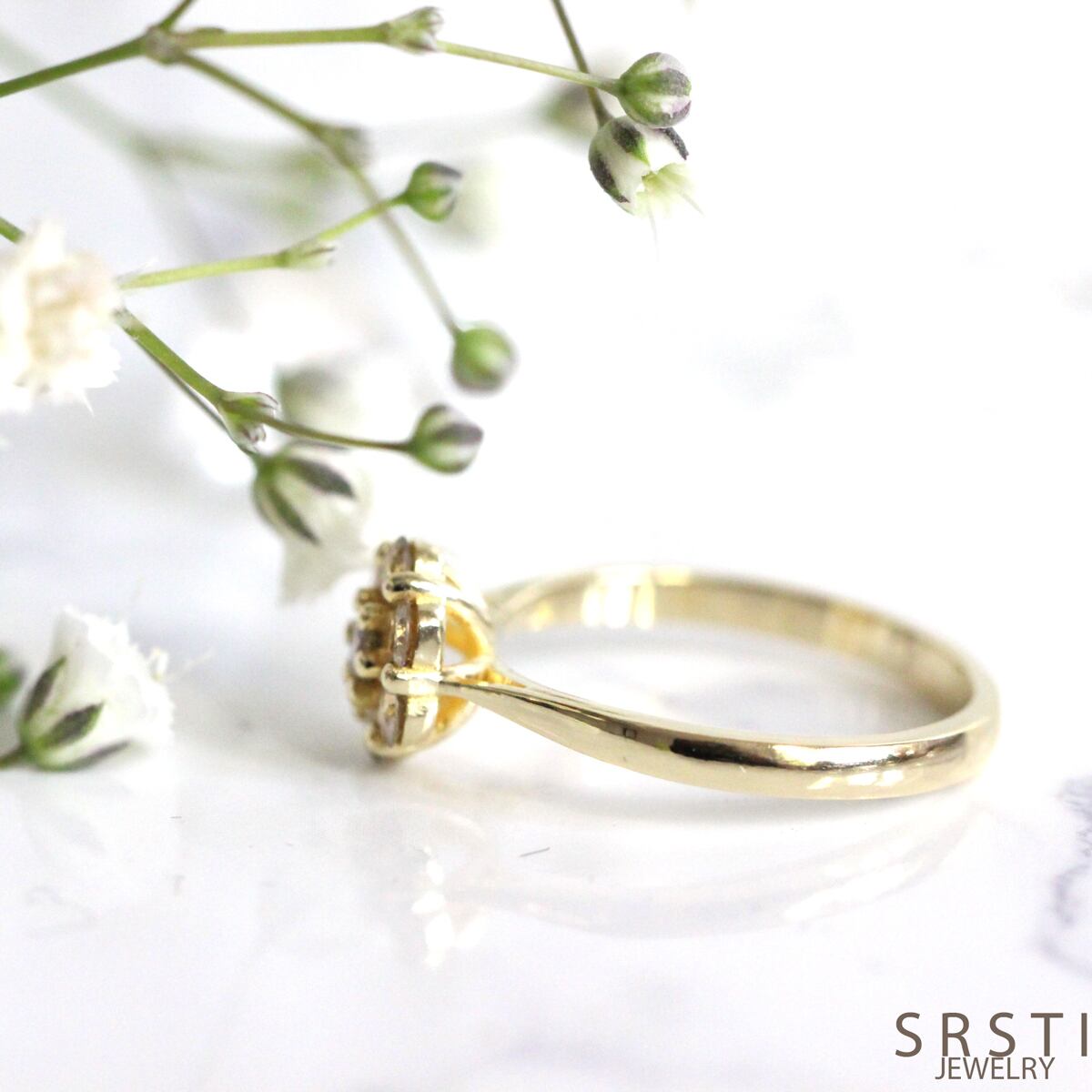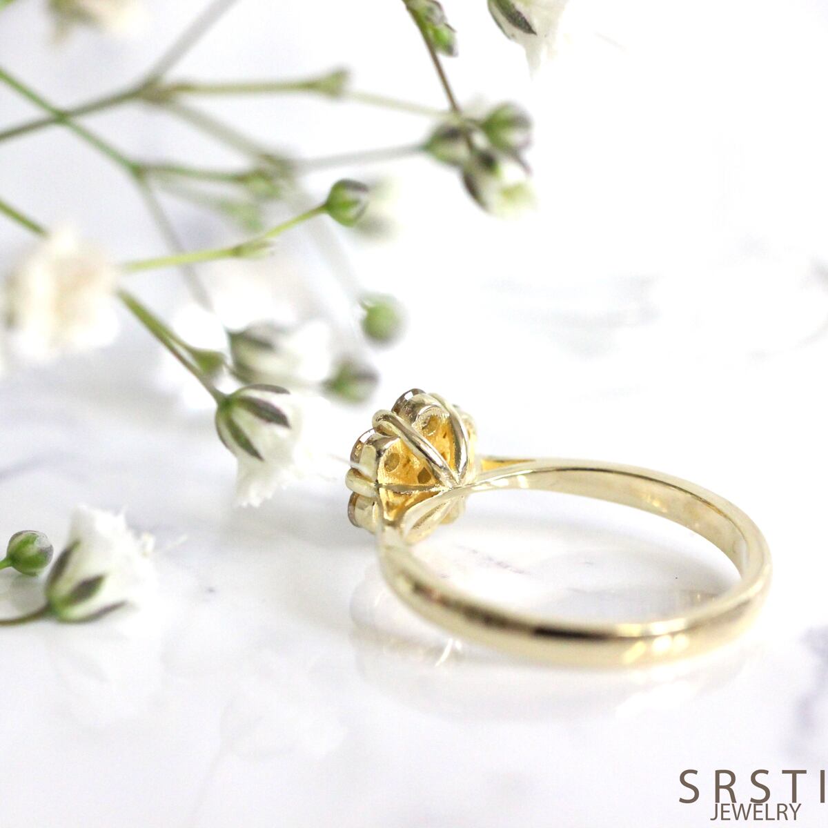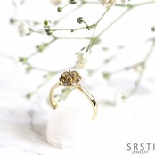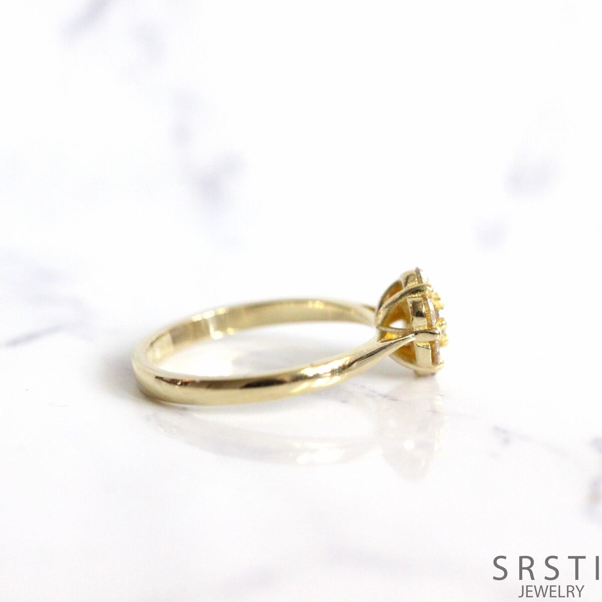 繊細な爪留めによって光をたっぷり取り込み、小粒ながらも印象的な存在感になり