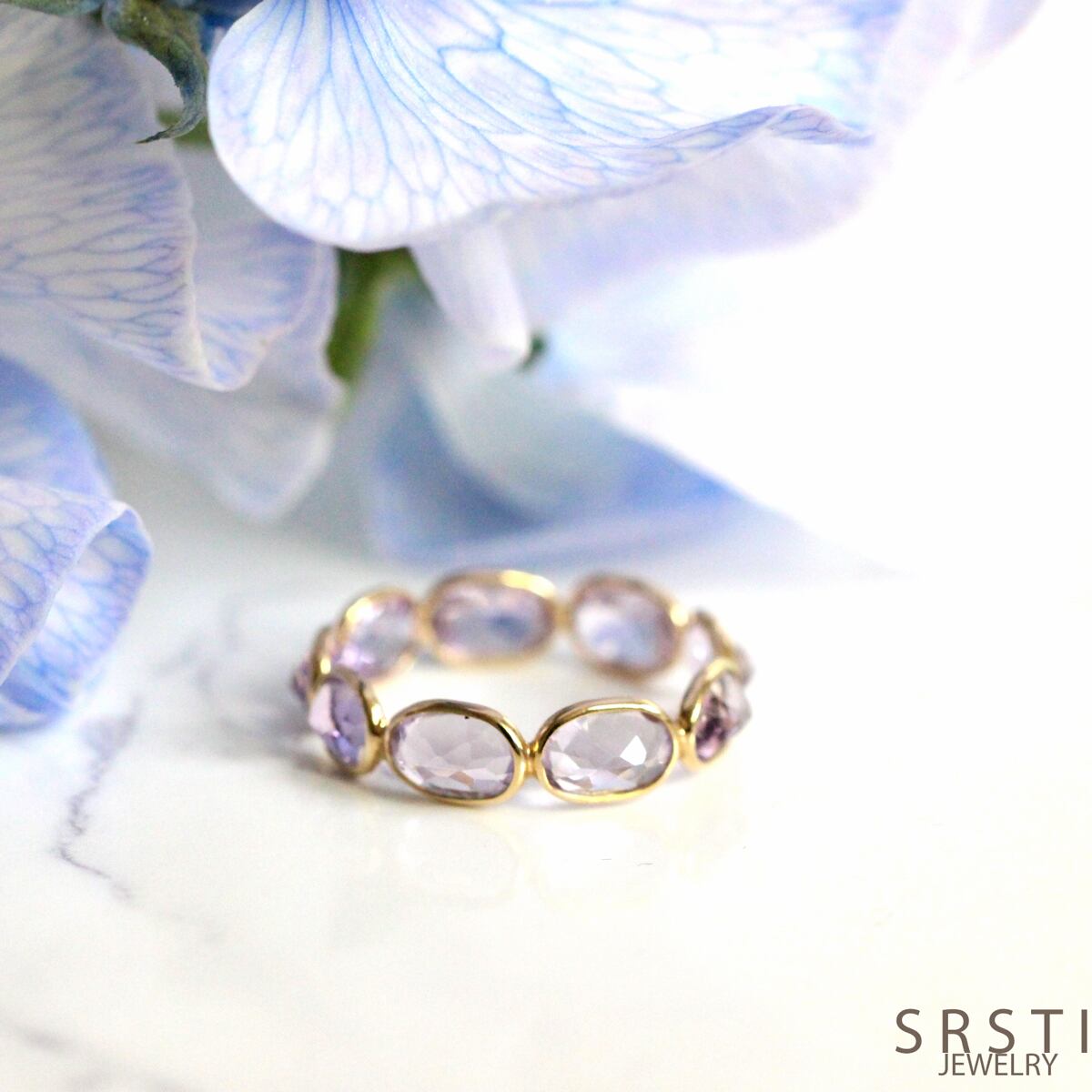 透明感あふれる美しいラベンダー色のローズカットのアメシストをエタニティリングにしました。