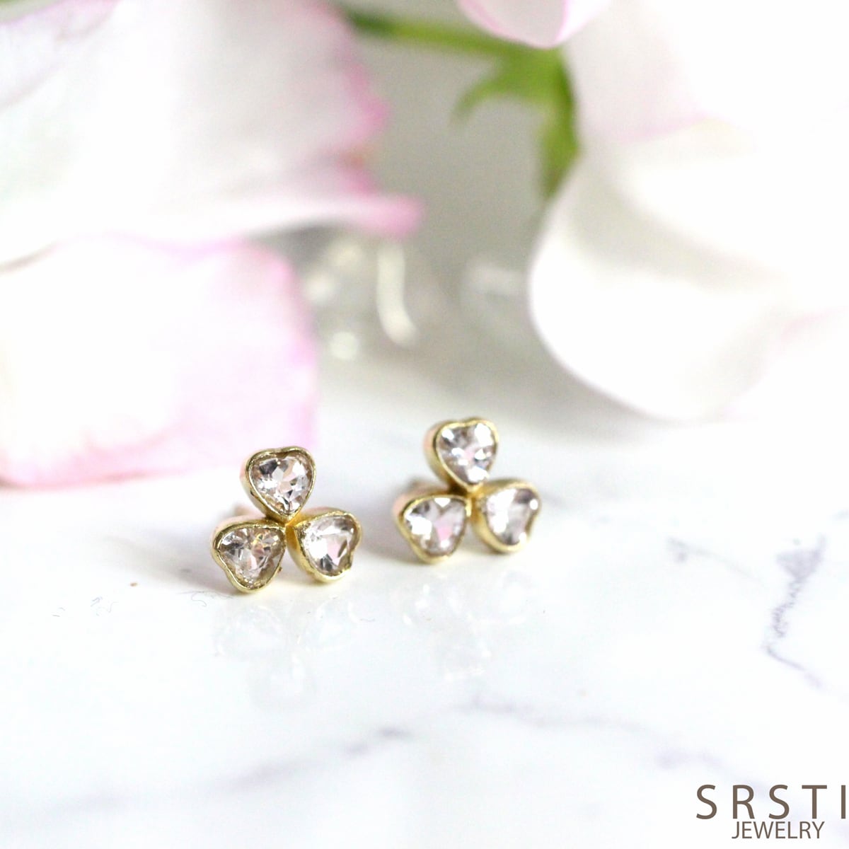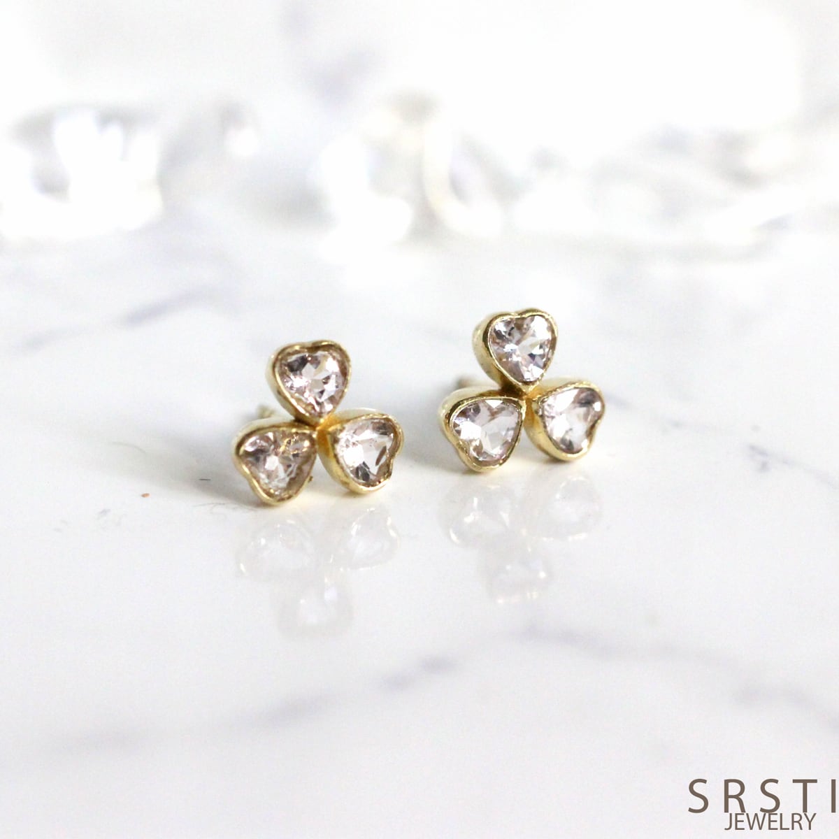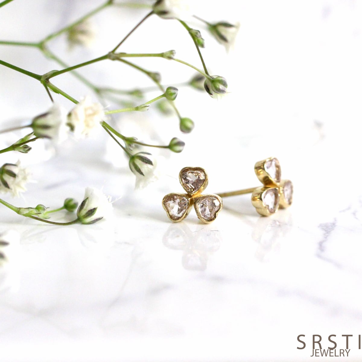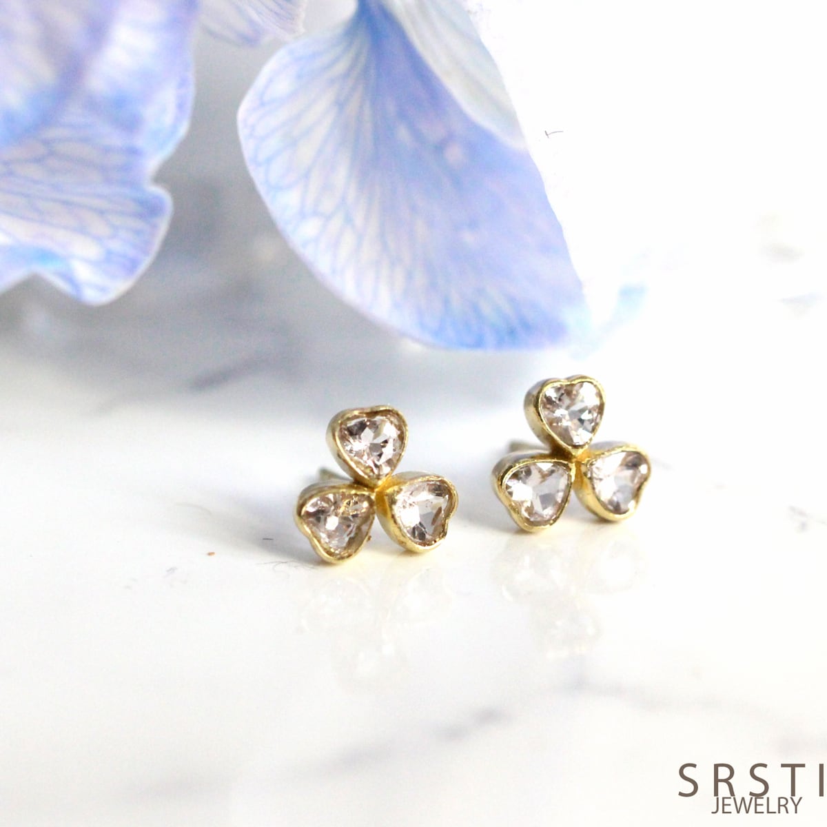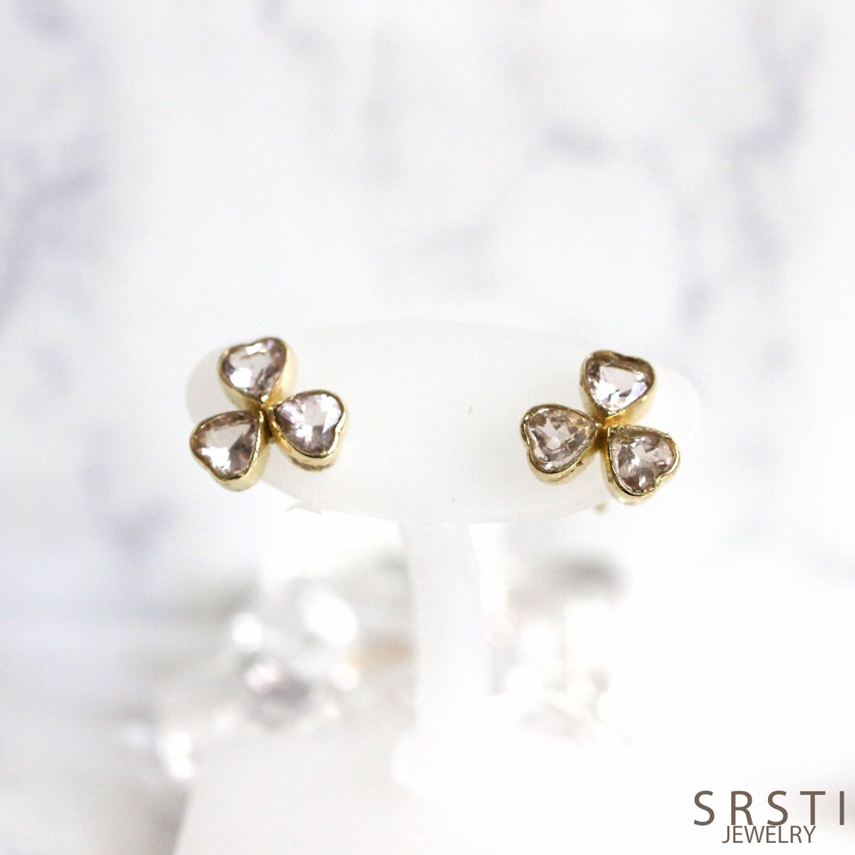 透明感のある美しいハート型のモルガナイトを3つ合わせ、スタッドピアスとして華やかにデザインしました。