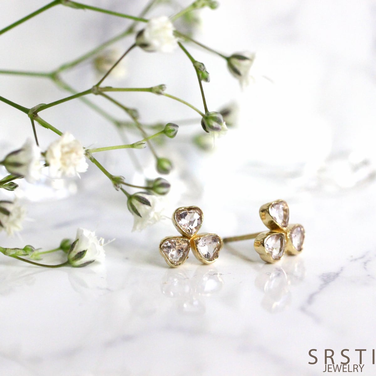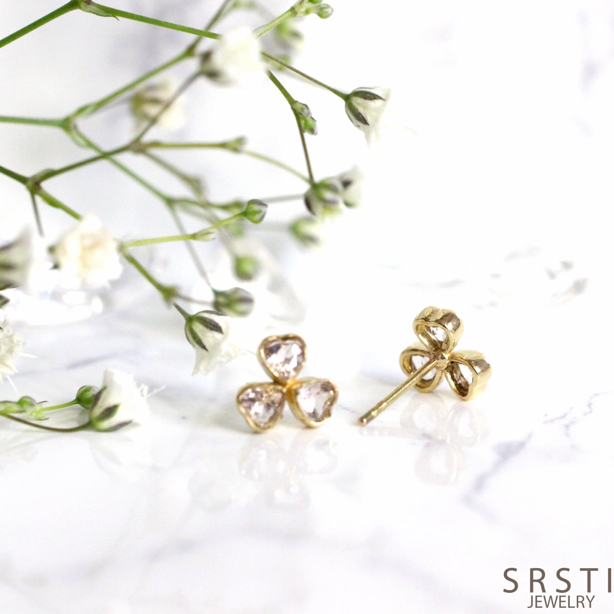 愛らしいクローバー型のデザインとモルガナイトの柔らかな色合いが肌に優しく溶け込み、耳元に特別な輝きを添えてくれます。