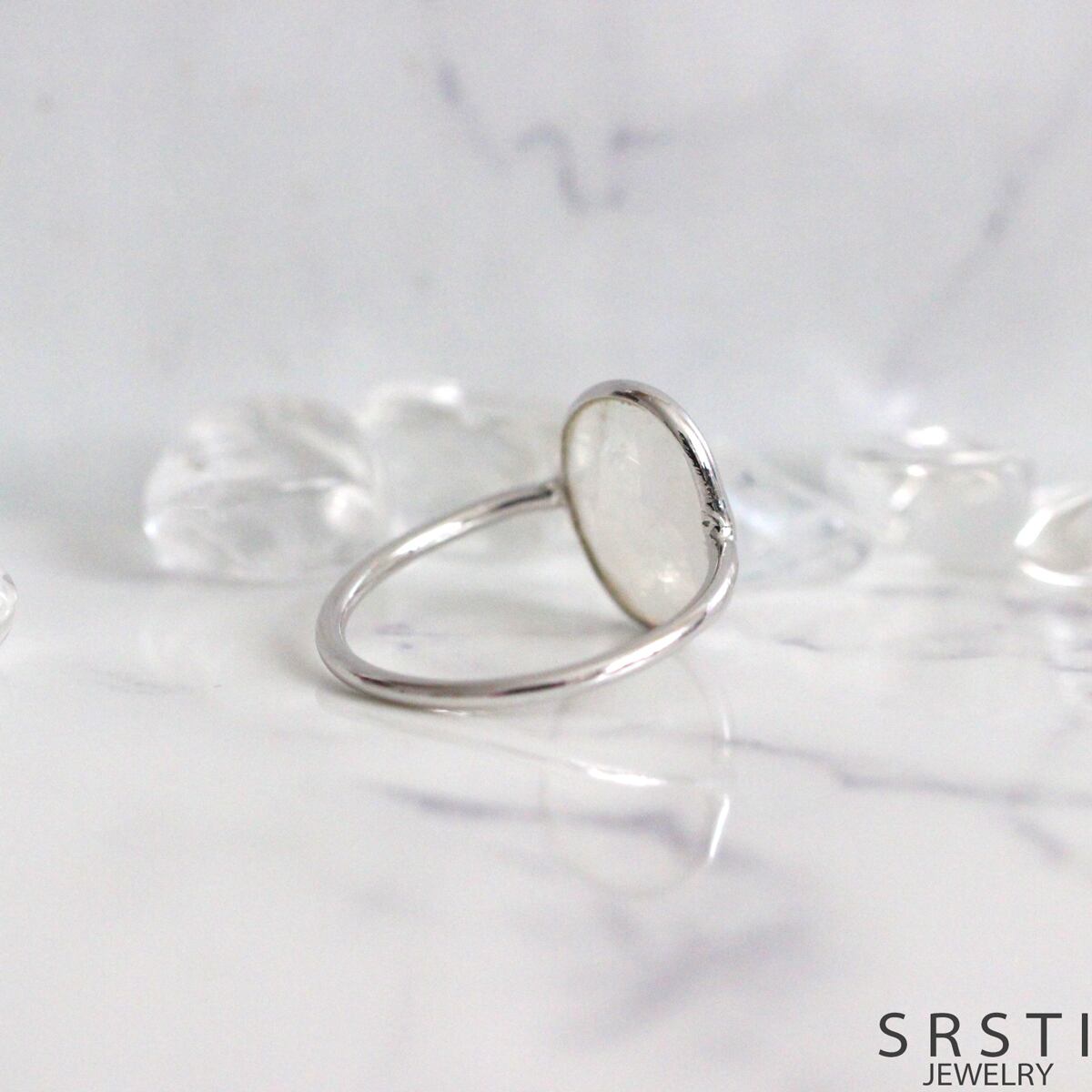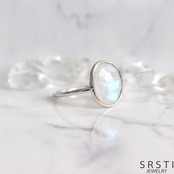 美しい虹色の輝きを持つレインボームーンストーンのローズカットをシンプルなSV925のリングに仕立てました。氷砂糖にシラー効果のある繊細な輝きと色彩は、涼やかで上品な雰囲気を醸し出してくれます。