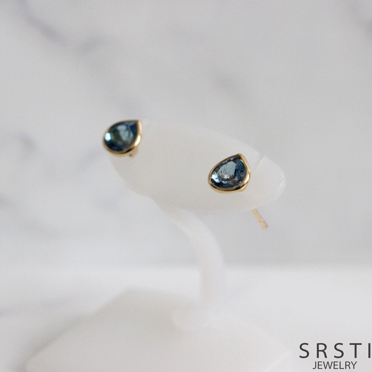 コロンとしたピアシェイプのサンタアクアマリンをK14のソリッドのイエローゴールドでキュートなスタッドピアスに仕立てました。透明感あふれるアクアマリンが耳元を優雅に彩り、どんなスタイルにもマッチする使いやすさが魅力です。